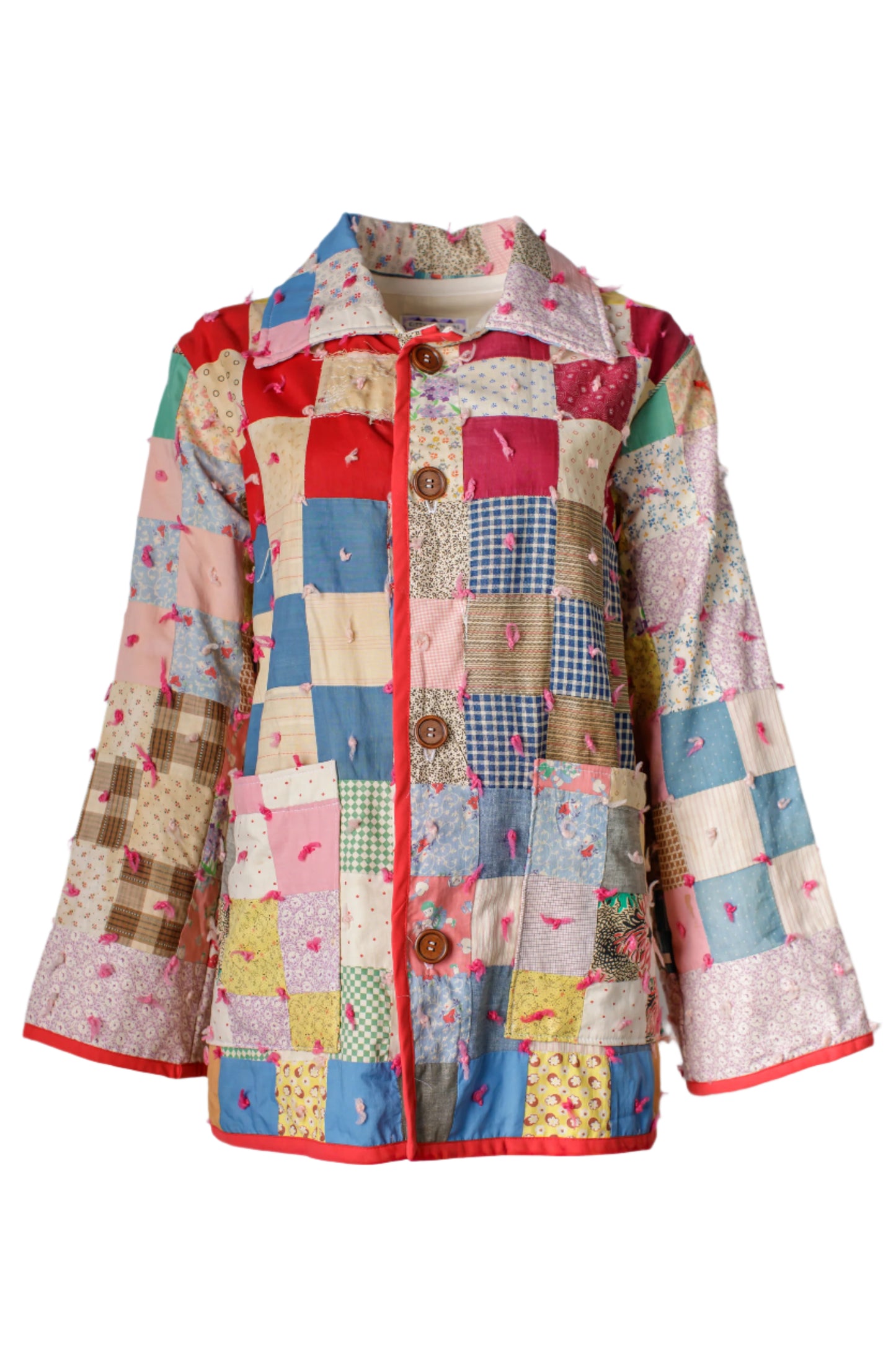 This Coat is made from a lovingly collected vintage quilt. All quilts tell a story, and it is our mission to breathe new life into these textiles so that their story can continue through a one-of-a-kind piece of wearable art. Because of the vintage and handmade nature of the quilts themselves, coats may have signs of wear, mending, and other “imperfections” that are all just a part of the quilt’s lived history.