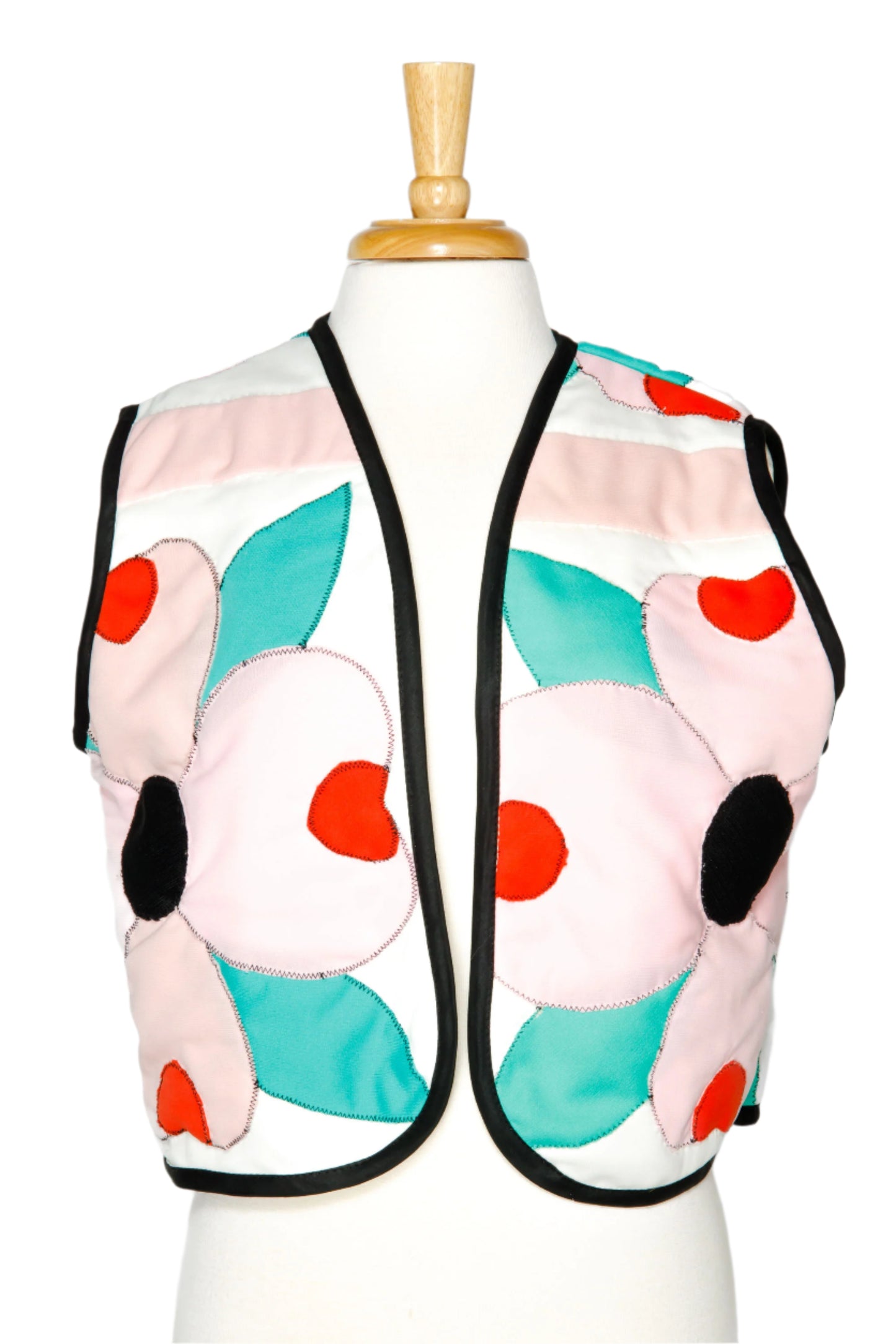 Regular price $110.00 USDLightweight Quilt Vests – the perfect way to add a burst of vibrant color and unique style to any outfit. These vests feature a sleek, curved silhouette, a cropped length for a modern look, and bias-bound edges to really make them pop!