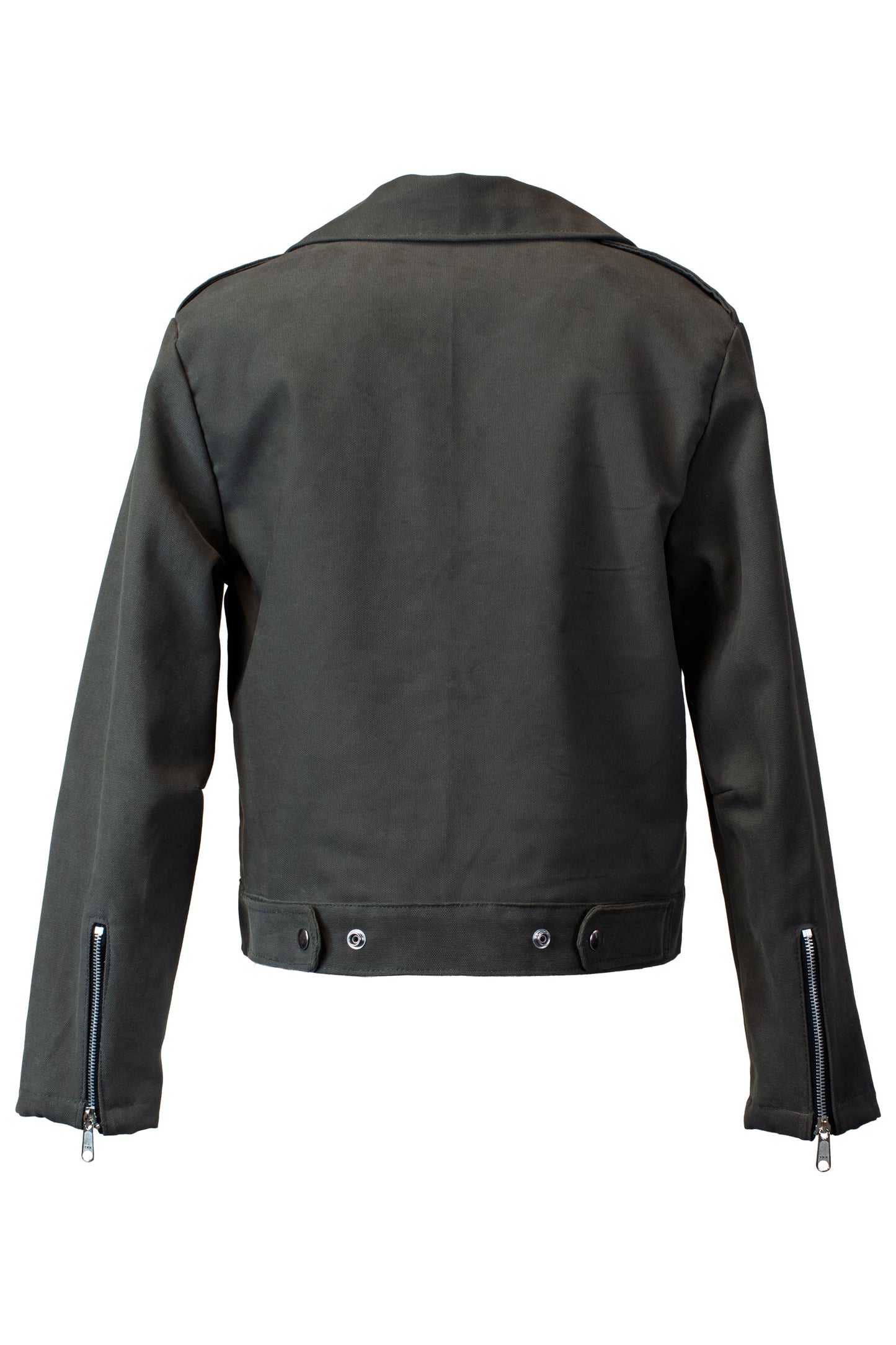 - Zippered front pockets + shoulder epaulets for a classic "moto" vibes