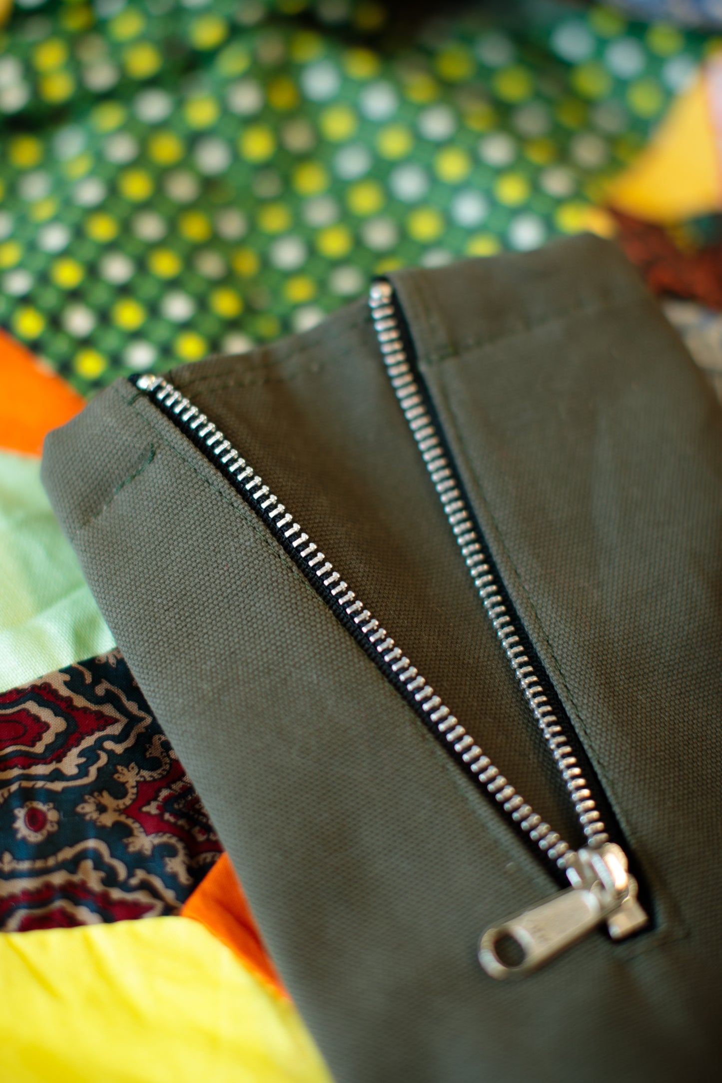 Made from 12oz. USA manufactured cotton canvas, and fully lined with vintage dresden plate quilt, the Quilt Lined Canvas Adeline Biker Jacket by Kitty Badhands is a bold, one-of-a-kind layer with serious attitude. Inspired by Adeline Van Buren, the first woman to motorcycle across the U.S. in 1916, this jacket is where vintage charm meets biker edge.