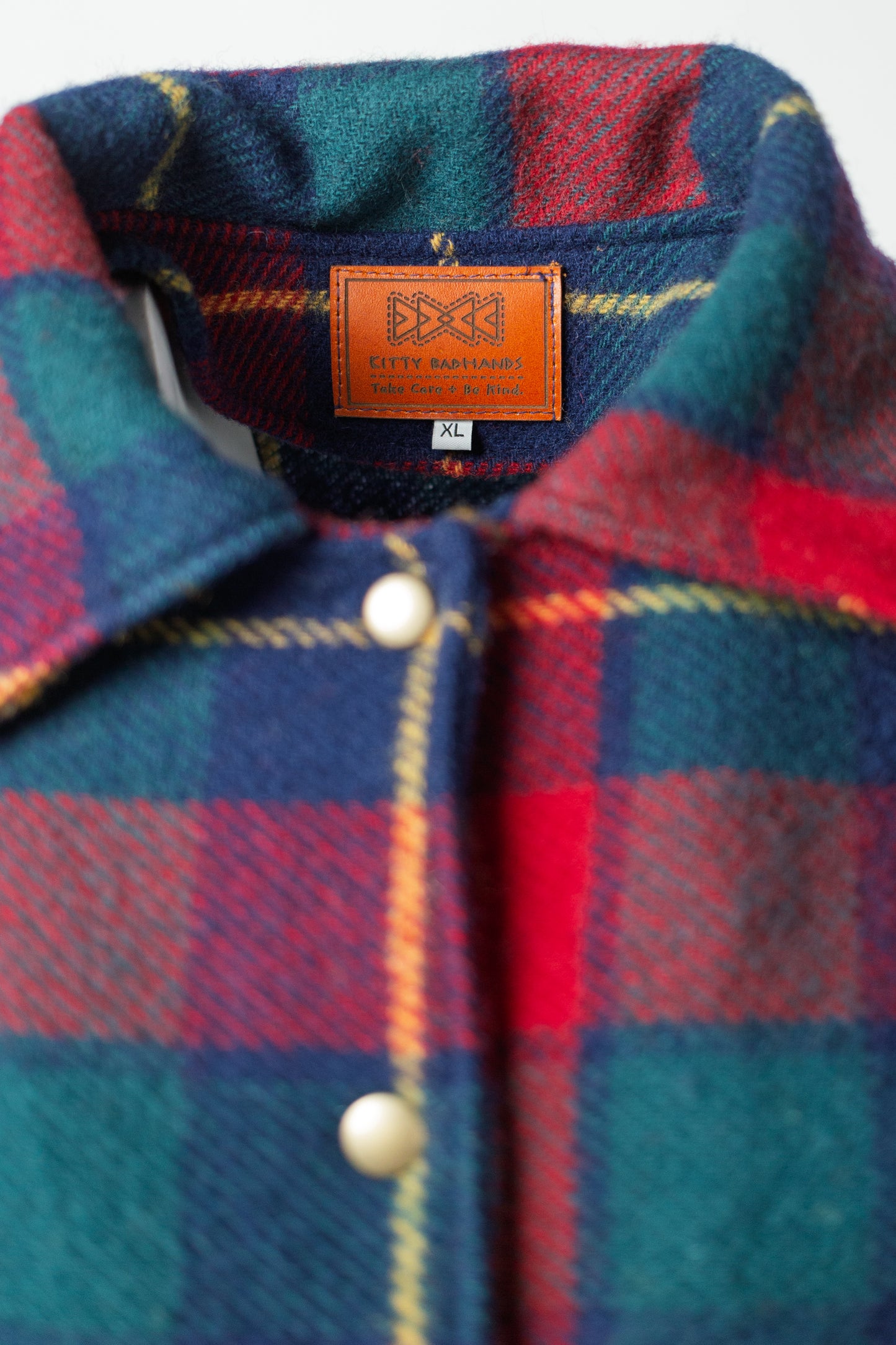- Functional touches: front pockets, a classic collar, and 5 antique brass snaps