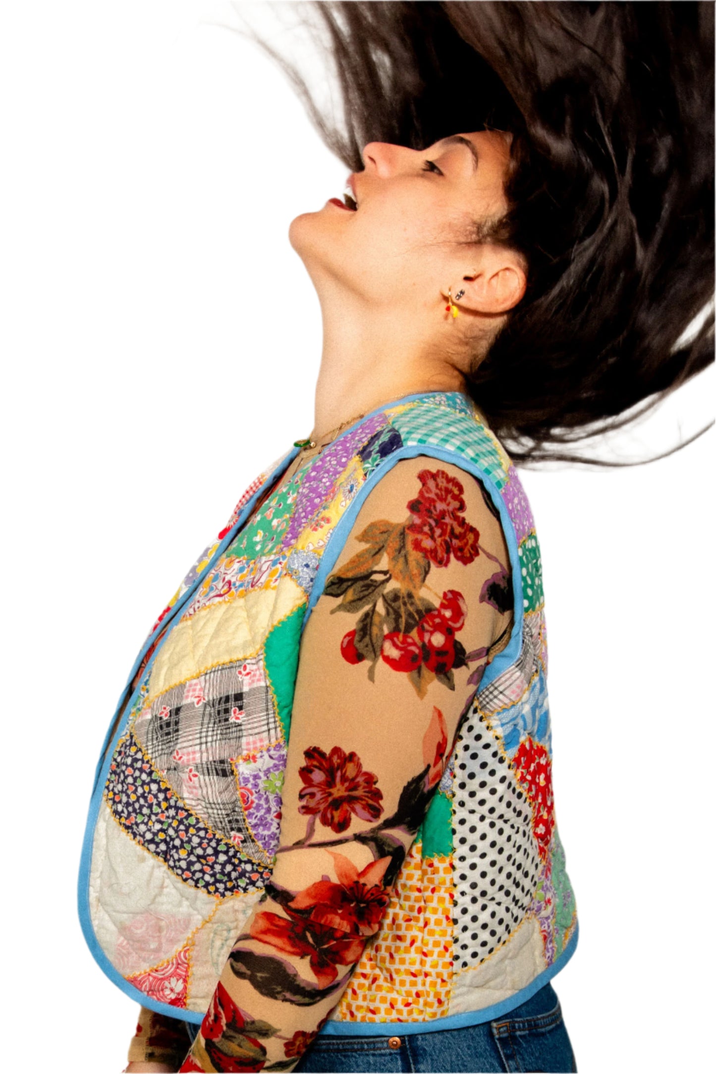 Regular price $174.00 CADLightweight Quilt Vests – the perfect way to add a burst of vibrant color and unique style to any outfit. These vests feature a sleek, curved silhouette, a cropped length for a modern look, and bias-bound edges to really make them pop!
